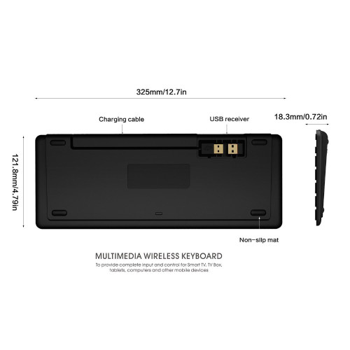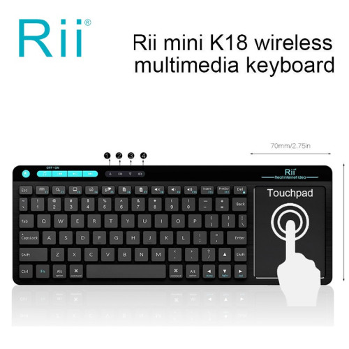 10 metrų spinduliu veikiantis Rii K18 belaidis ryšys leidžia laisvai įsitaisyti, bet kurioje patogioje kambario vietoje ir iš ten naudotis visomis kompiuterio funkcijomis klaviatūra. Šią klaviatūrą galima prijungti prie televizoriaus, PC, android mini kompiuterio, windows mini komiuterio ir t.t., Galėsite pagarsinti mėgstamų „YouTube“ klipų muziką, pristabdyti savo atostogų nuotraukų demonstraciją ar parašyti į socialinį tinklą apie filmą, kurį ką tik atsisiuntėte. Ir visa tai – tik vienu įrenginiu. Nepaisant to, ar naršote internete, ar rašote laišką draugui, valdyti ir spausdinti su itin tyliais žemo profilio klavišais yra labai patogu“. Itin plona ir kokybiška.