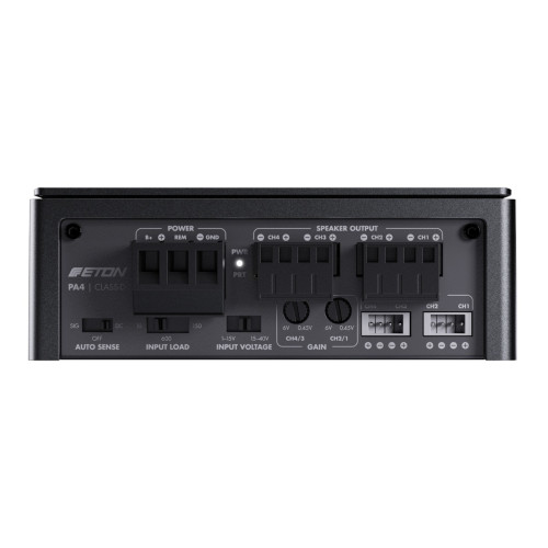 4 kanalų pažangus D klasės stiprintuvas su pažangiausia stiprintuvo technologija ir aukštos kokybės liejo aliuminio korpusu su nuimamu dangteliu. Integruotas reguliavimo įrankis leidžia lengvai reguliuoti stiprintuvą net virš galvos ar uždarose erdvėse. Visiškas našumas mažiausiu dydžiu su asimetrišku galios paskirstymu: CH1/2 2 x 45 W esant 4 Ω + CH3/4 2 x 80 W esant 4 Ω, CH1/2 esant 2 Ω nepalaikoma + CH3/4 2 x 140 W 2 Ω, CH1/2 maitinimo tiltas esant 4 Ω nepalaikomas + CH3/4 1 x 280 W esant 4 Ω tiltui. Signalo ir triukšmo santykis 78 dB, slopinimo koeficientas @ 4 Ω >65, itin žemas THD+N 0,01 % @ 10 W 1 kHz, aktyvusis aukšto dažnio filtras CH1/2 ir CH3/4: 50–5000 Hz, žemo dažnio praleidžia aktyvųjį filtrą CH1/2 ir CH3/4: 50 - 5000 Hz, automatinio įjungimo funkcija (SIG / DC), perjungiamas garso įvesties signalas į CH1-4, stiprinimas 0,45 V - 6 V, reguliuojamas aukšto lygio įėjimas įtampa 1 - 15 V | 15 - 40 V, reguliuojama aukšto lygio įėjimo varža 10| 150 | 600 Ω, 4 x garso įvestis (aukštas ir žemas lygis), kintamos tvirtinimo kojelės, nuimami maitinimo ir garso signalų kabelių jungčių kištukai, išmanūs matmenys (PxPxA) 128 x 100 x 45 mm.