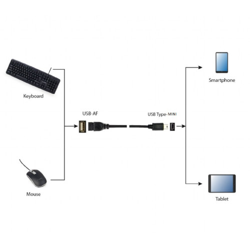 Perėjimo adapteris USB lizdas - mini USB kištukas, USB-BF/MUSB