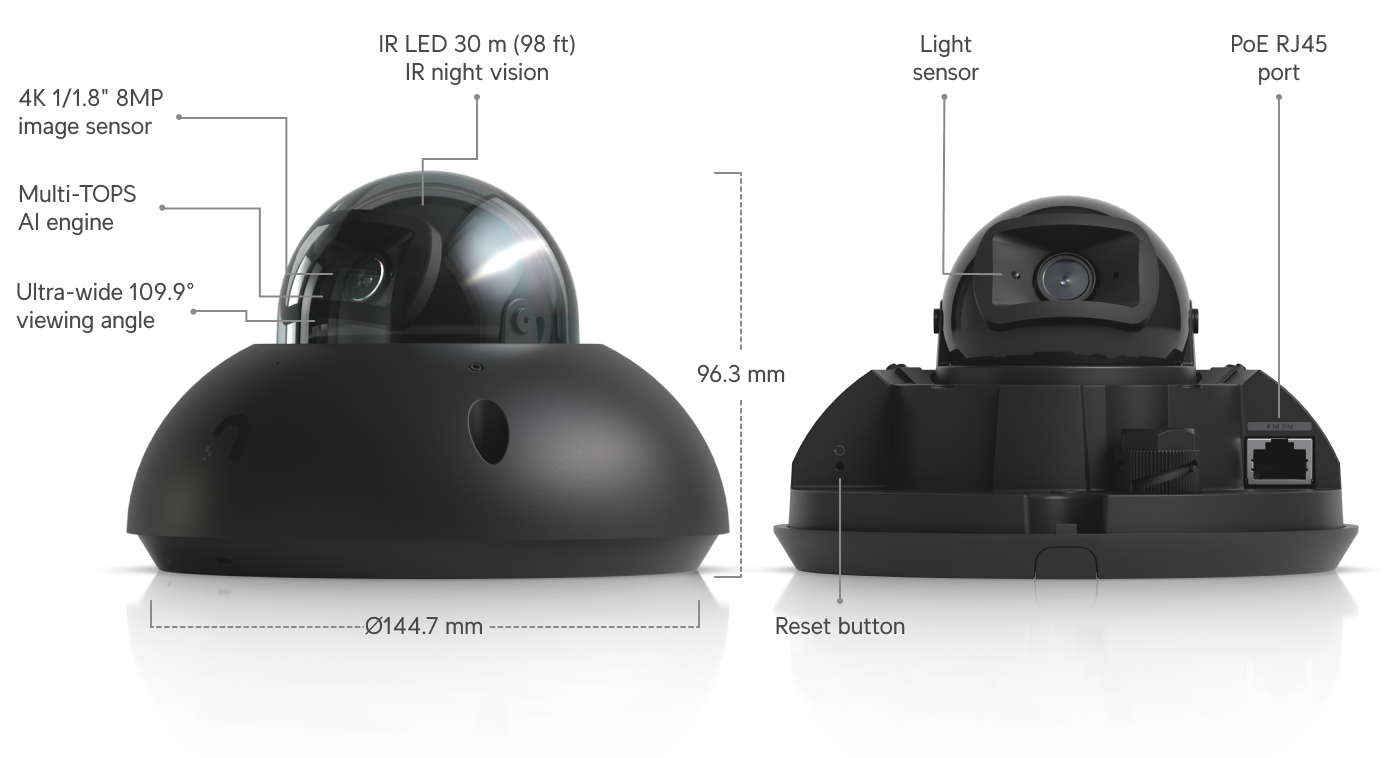 Kamera Ubiquiti UVC-G6-Dome-B (juoda, 8MP, 4K, IR 30 m, PoE, IP66, IK10)
