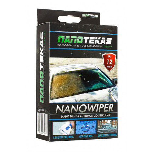 Jūsų automobilio valytuvai nespėja valyti priekinio stiklo per lietų? Per liūtį teko ne kartą stoti šalikelėje, nes tiesiog nebematėte, kur važiuojate? Pavargote gramdyti vabzdžius? Ši priemonė kaip tik Jums – NANOWIPER priekinio stiklo danga skirta matomumui pagerinti per liūtis, smarkų lietų. Šia priemone padengti priekinio automobilio stiklai sudarys galimybę Jums važiuoti savo transporto priemone net per smarkiausią lietų didžiuliu greičiu, kuomet automobilio valytuvai tiesiog nebepajėgia susitvarkyti su lietumi arba kitų automobilių (ypatingai krovininių sunkvežimių) sukeliamais purslais važiuojant šlapia kelio danga. Produkto efektyvumas toks didelis, jog Jums paprasčiausiai nereikės įjungti valytuvų – dėka aukštomis technologijomis paremtos nanodangos, stiklą nuvalys oro srautas.