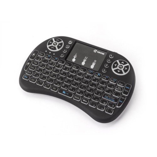 Mini belaidė klaviatūra VONTAR i8 + 2.4G su 7 spalvų apšvietimu ir rusiška touchpad jutikline pele. Su šia klaviatūra, lengvai ir patogiai galėsite naudotis nešiojamu/stacionariu kompiuteriu, smart tv, smart tv priedėliais, ps3, ps4, xbox360, projektoriais.